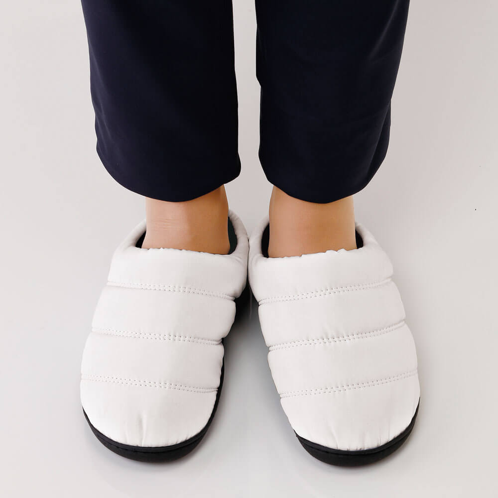 クローズトップで足先まで覆われているので冷え対策に。